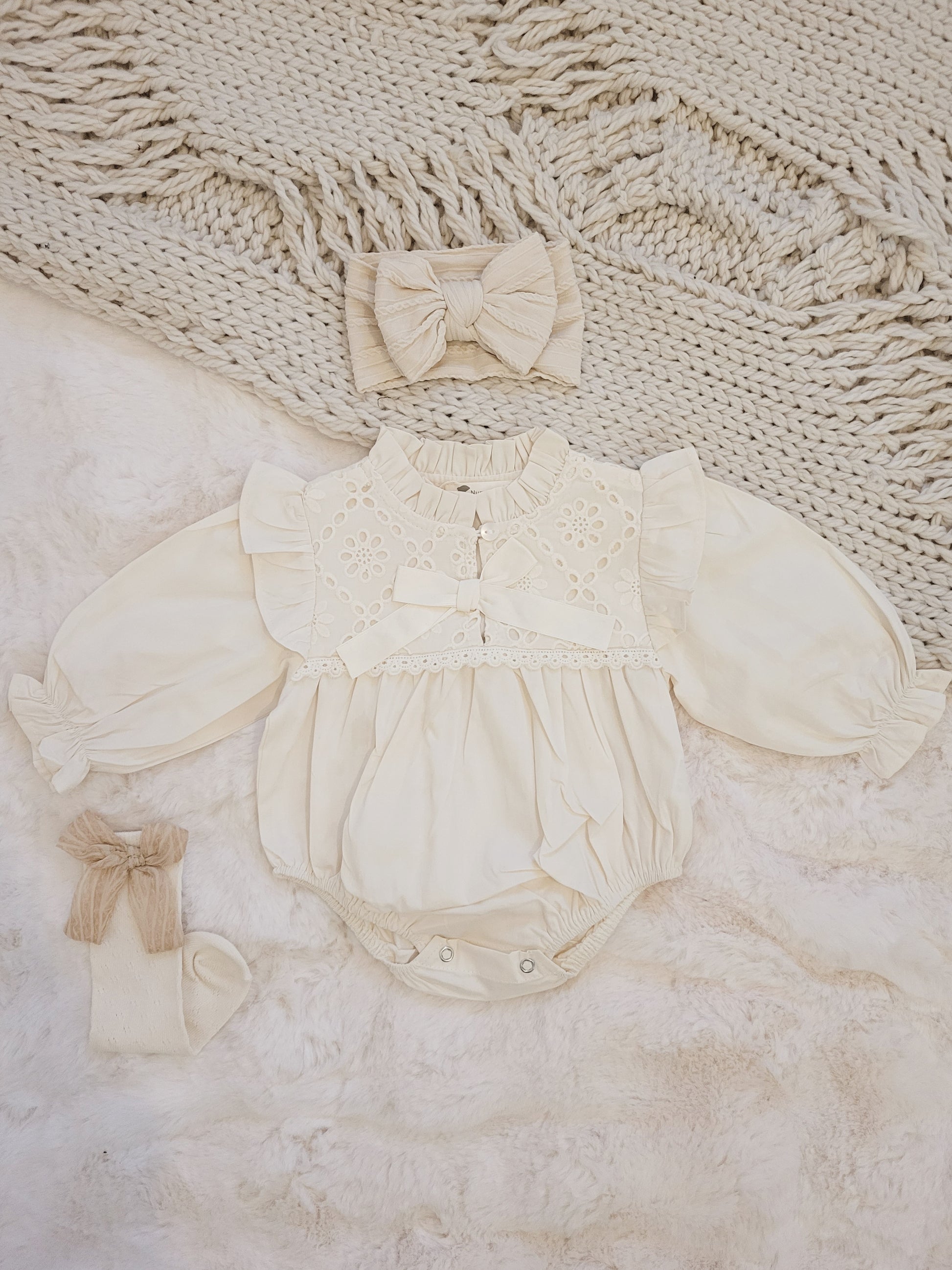 You get Celine Romper + Mia Hairband (cream) + Anne socks (cream)
