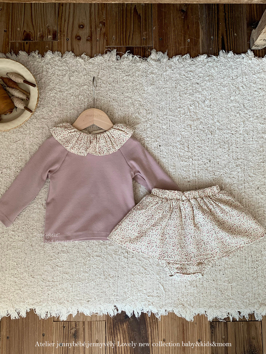 A timeless Korean-style set crafted in soft cotton corduroy, perfect for little girls who love to dress up in comfort.